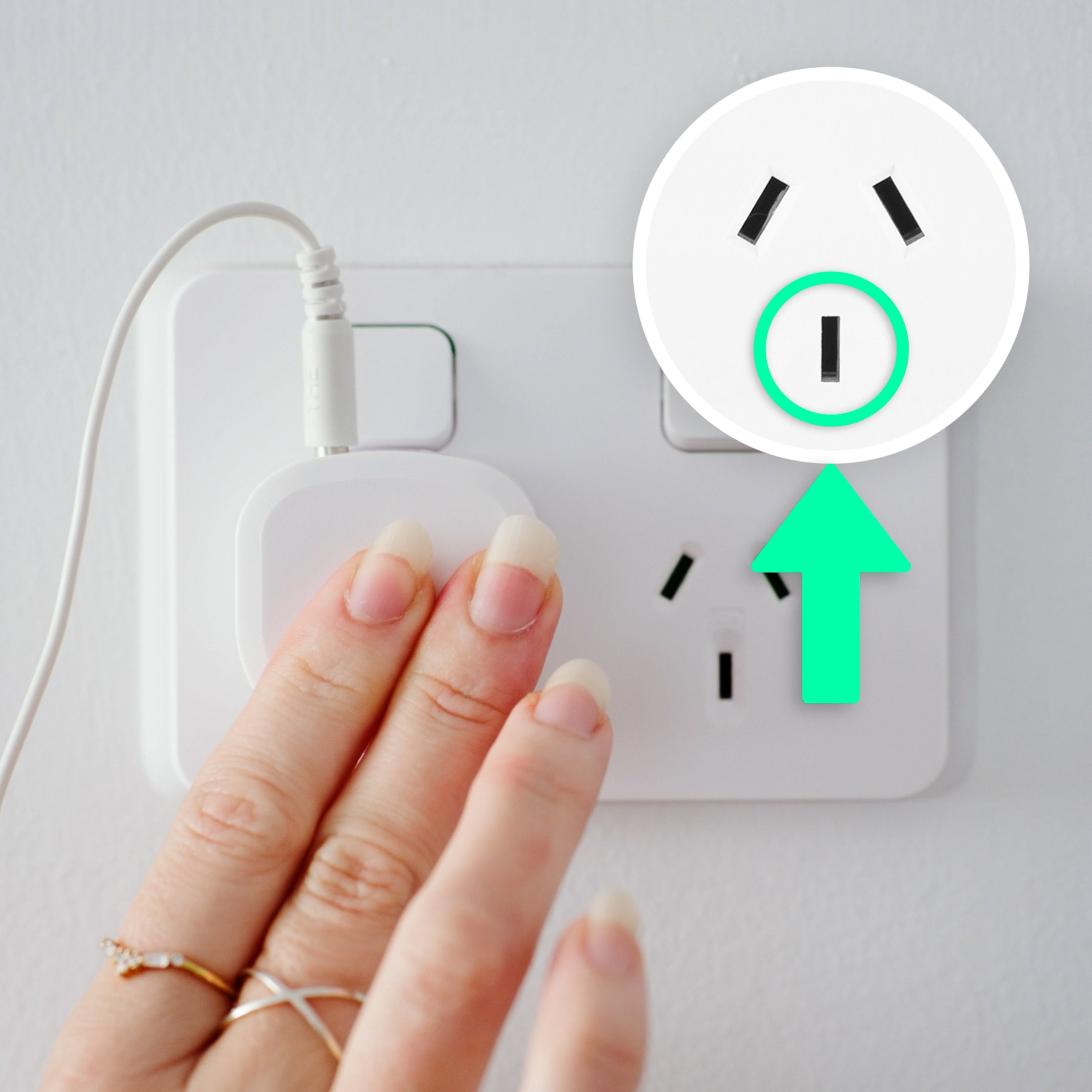 Plug the grounding wire into the grounding port of any outlet.