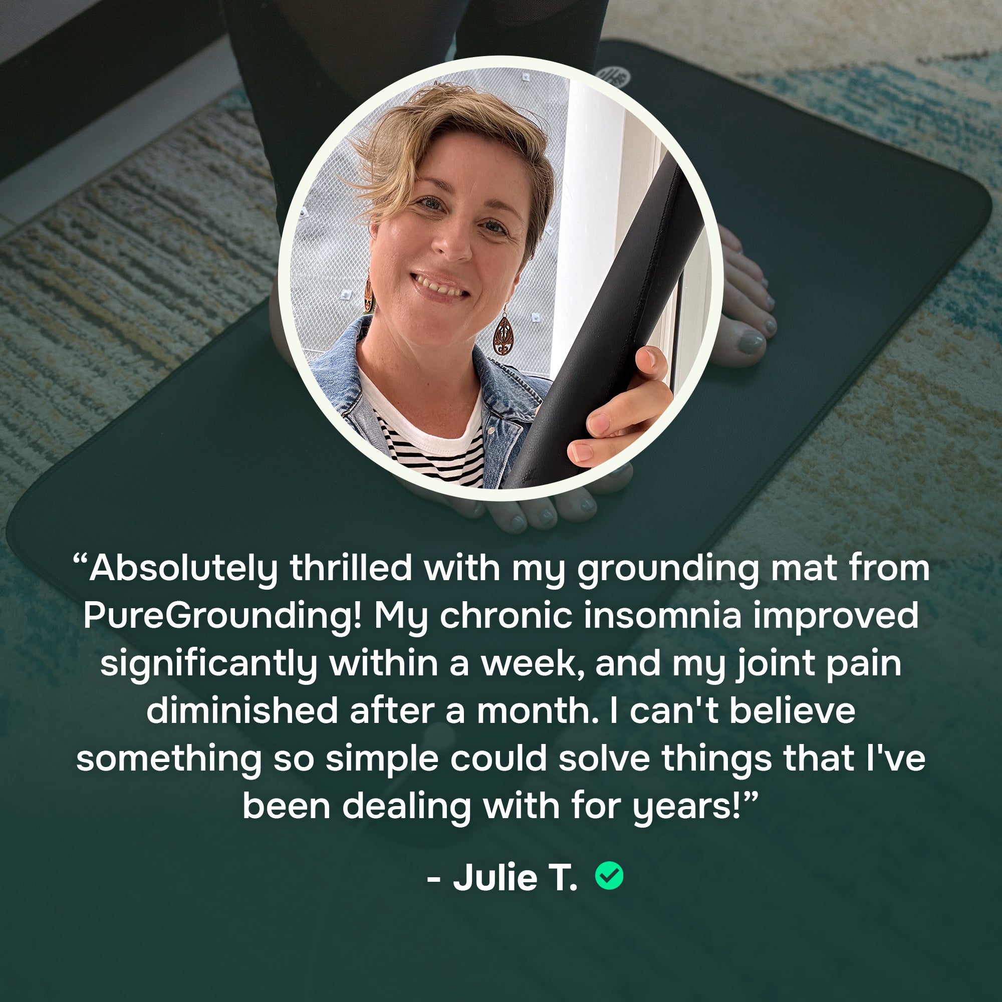 Absolutely thrilled with my grounding mat from PureGrounding! My chronic insomnia improved significantly within a week, and my joint pain diminished after a month. I can't believe something so simple could solve things that I've been dealing with for years!